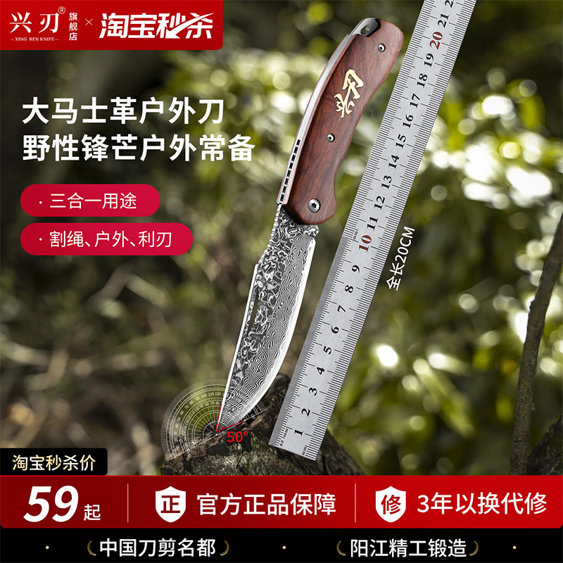兴刃大马士革锻打小刀折叠水果刀小刀锋利高硬度户外生存便携小刀