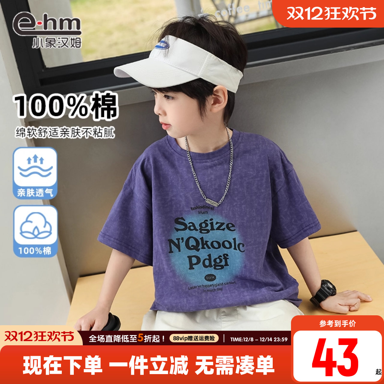 小象汉姆童装男童短袖t恤儿童夏天半袖中大童2025夏季新品韩版潮