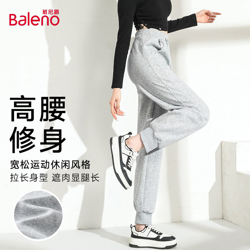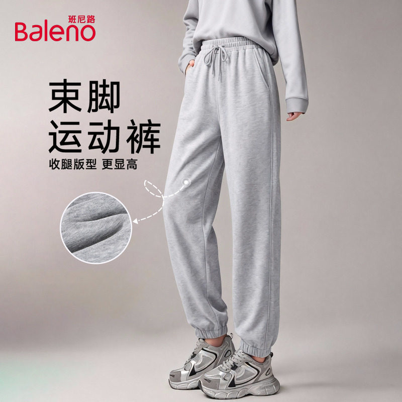 班尼路灰色束脚裤女2026春季新款高腰显瘦宽松休闲百搭运动卫裤Q