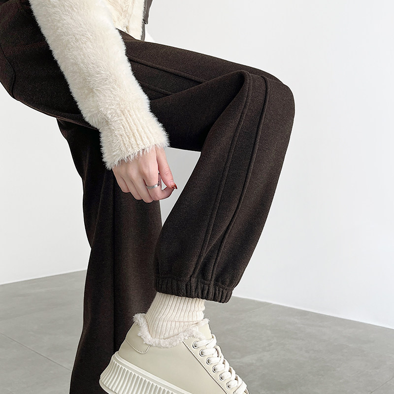 咖色束脚裤女冬加绒加厚羊毛直筒运动休闲卫裤宽松显瘦萝卜哈伦裤