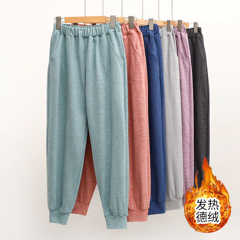 德绒高腰束脚裤女冬季保暖休闲长裤暖暖裤加绒宽松百搭大码运动裤