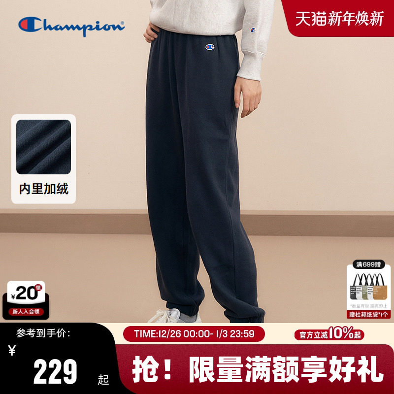 Champion冠军加绒束脚裤女冬季新款抽绳直筒卫裤保暖运动长裤秋