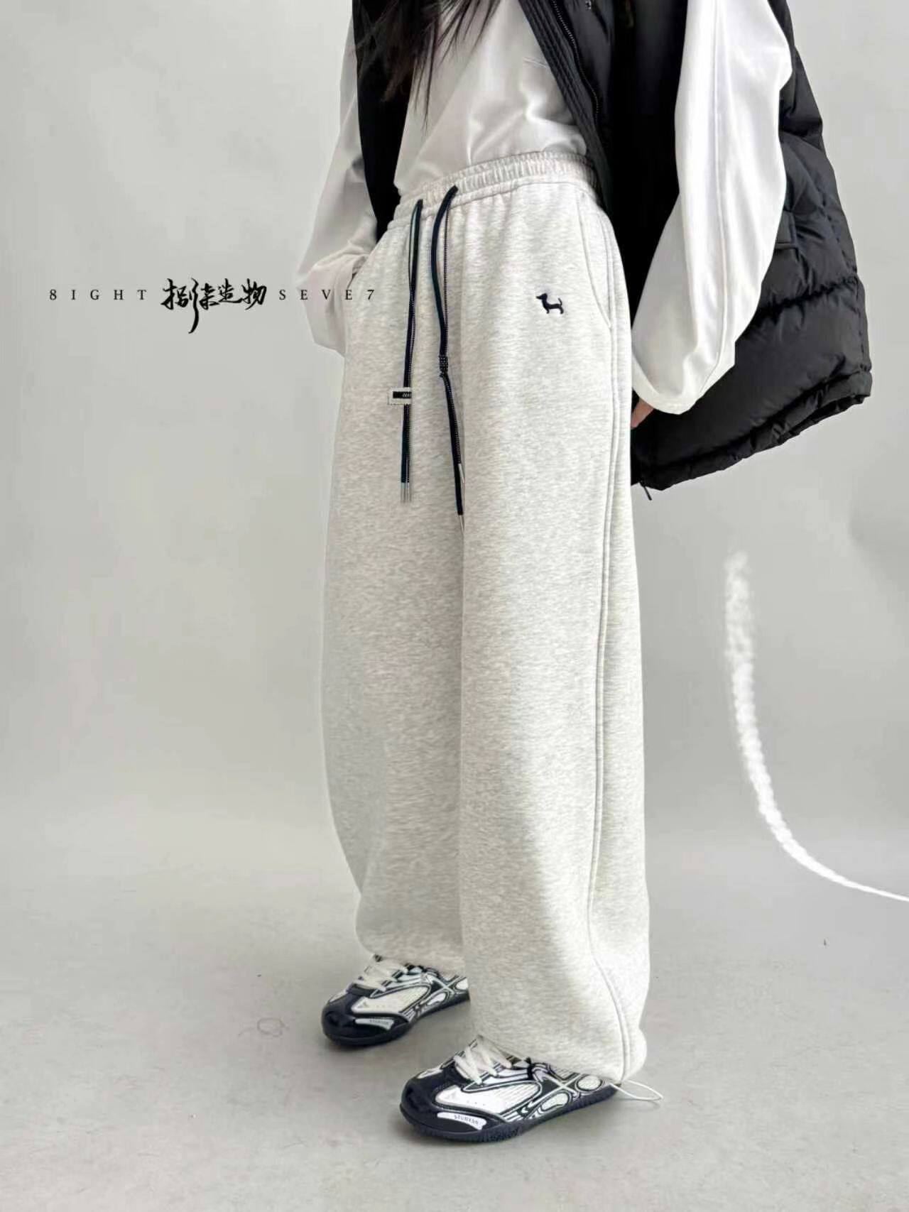 捌柒造物BQ1206冬宽松休闲刺绣松紧抽绳高腰显瘦加绒直筒束脚裤女