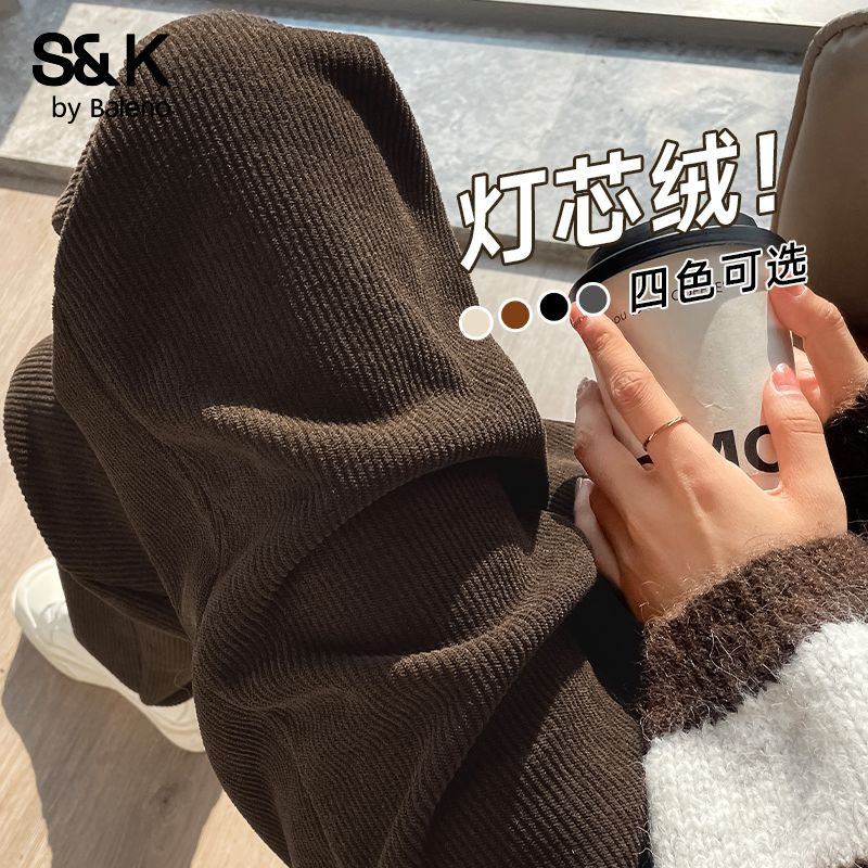 班尼路S&K系列复合灯芯绒束脚裤女2025新款宽松百搭简约保暖长裤Q