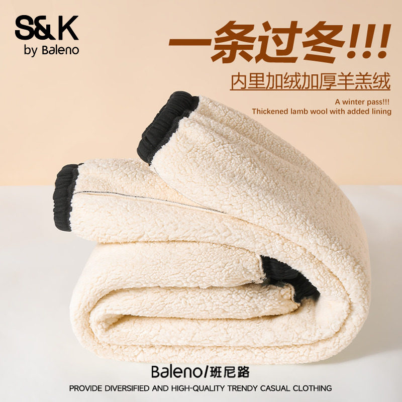 班尼路S&K系列羊羔绒螺纹束脚裤女2025秋冬新款加绒保暖运动卫裤Q