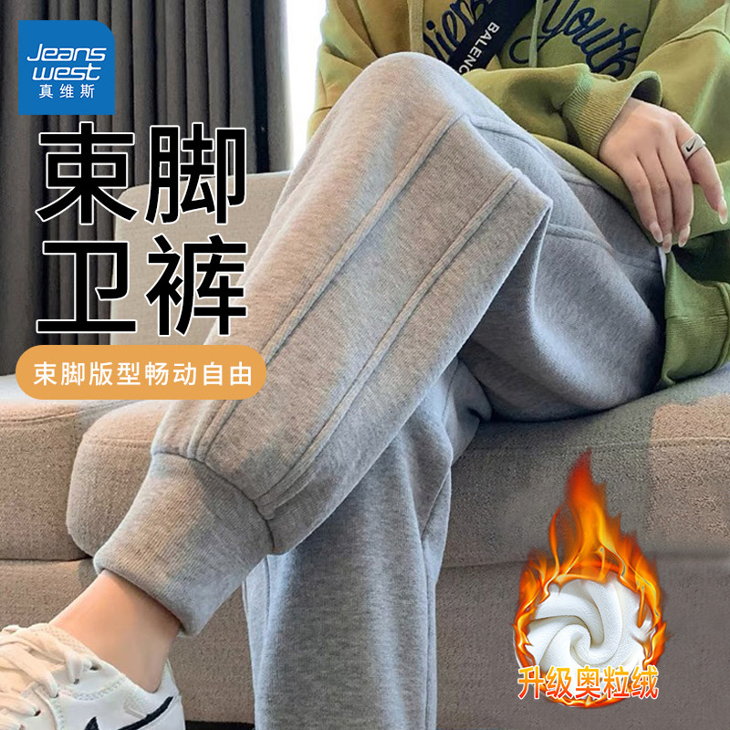 AMR UU◆保暖不臃肿~加绒加厚灰色卫裤休闲束脚裤女2025新款冬季