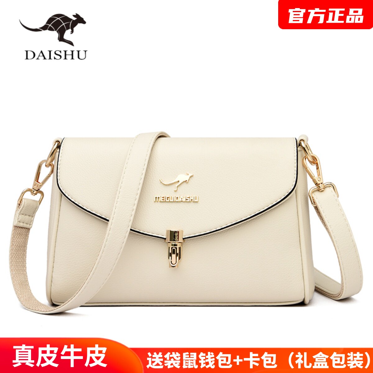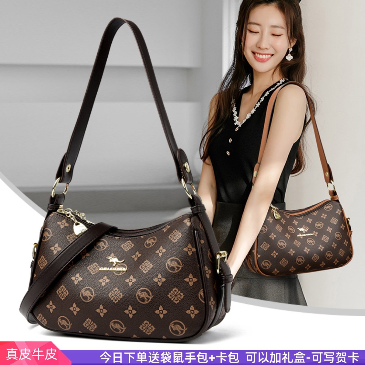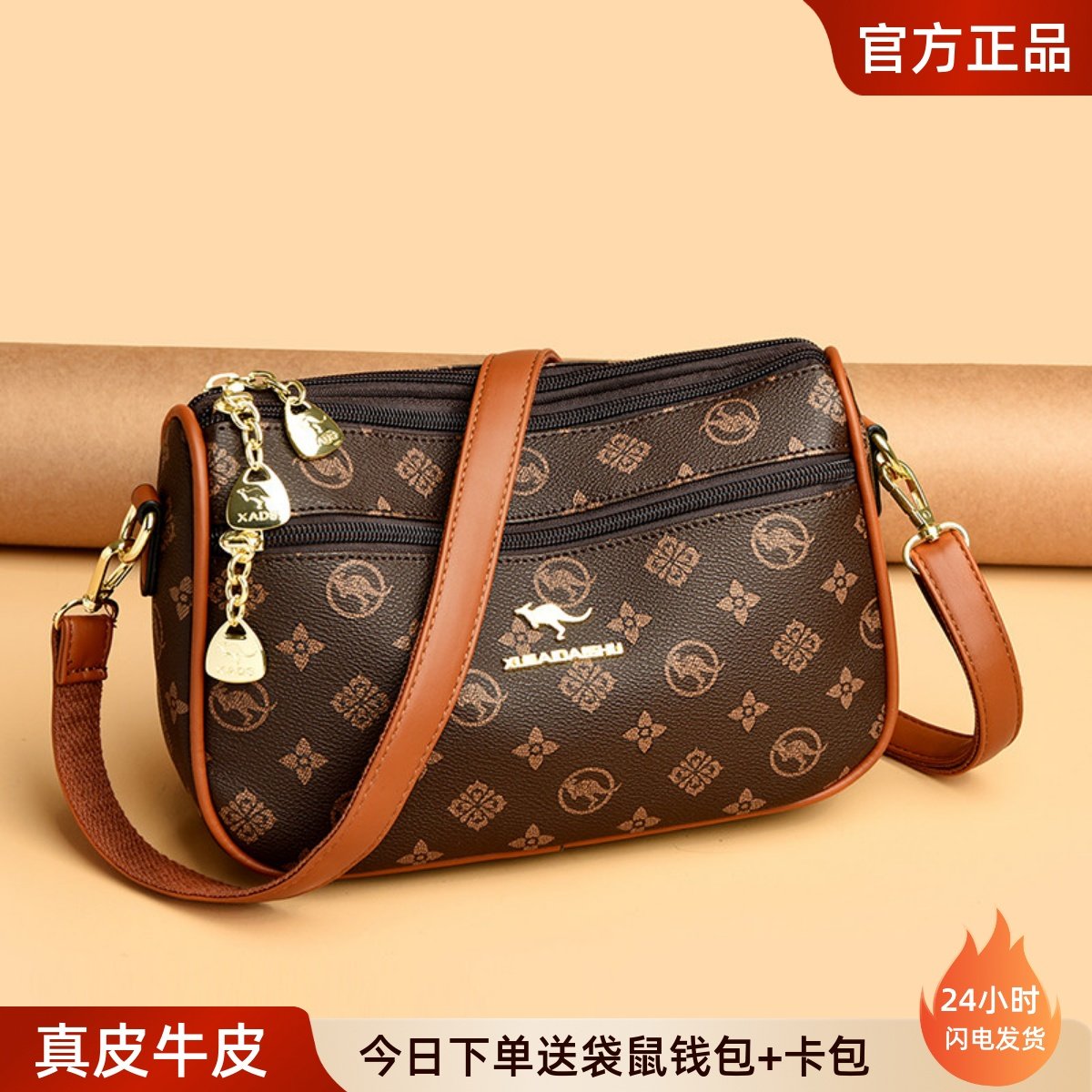 正品袋鼠真皮包包女2025新款中年妈妈女士单肩斜挎包牛皮小包软皮