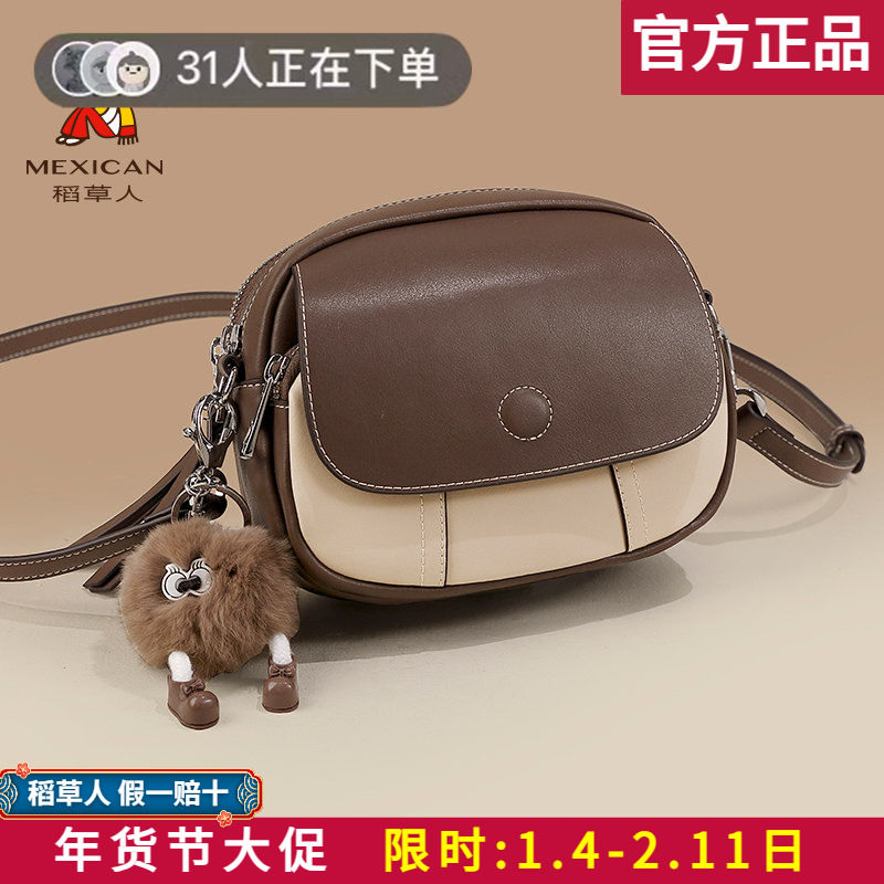 稻草人包包真皮女包2026新款百搭牛皮小包撞色休闲单肩斜挎包正品