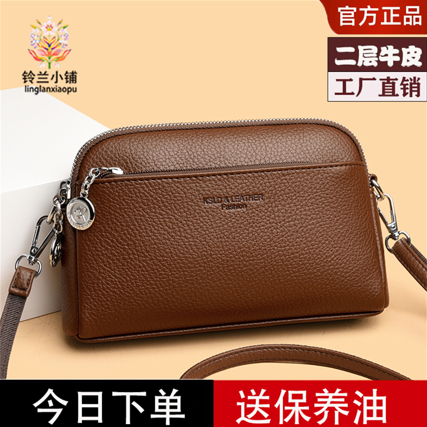 真皮女包2025新款百搭多层单肩包女牛皮小包时尚手拎包斜挎手机包
