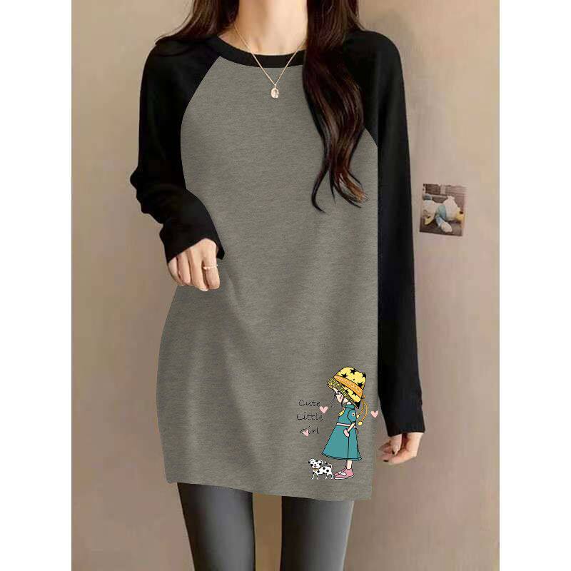 潮牌T秋冬中长款圆领卡通卫衣女百搭显瘦大码上衣纯棉洋气打底衫