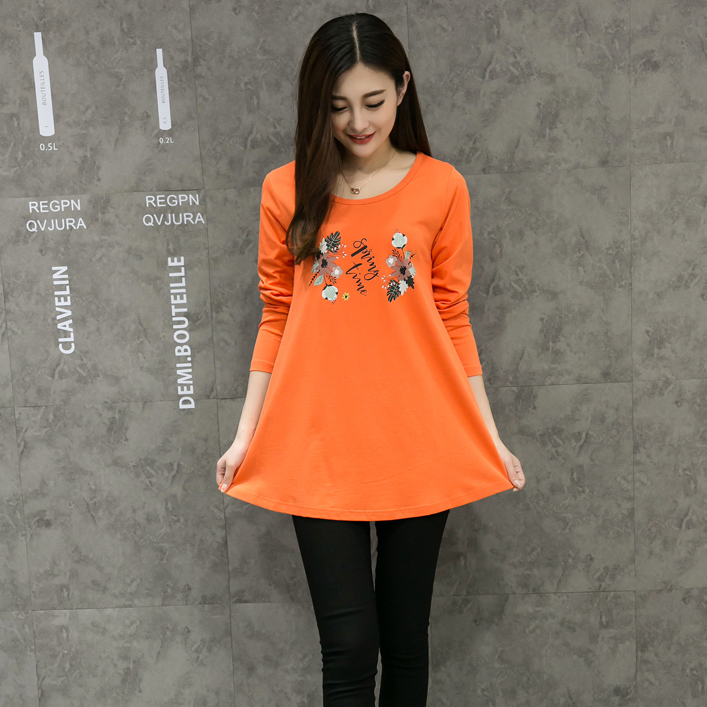 秋季打底衫女纯棉中长款长袖t恤女上衣新款宽松大码A字版型显瘦