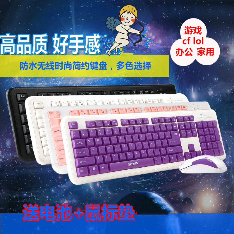 可爱女生紫粉彩色有线无线鼠标和键盘套装台式笔记本电脑智能电视