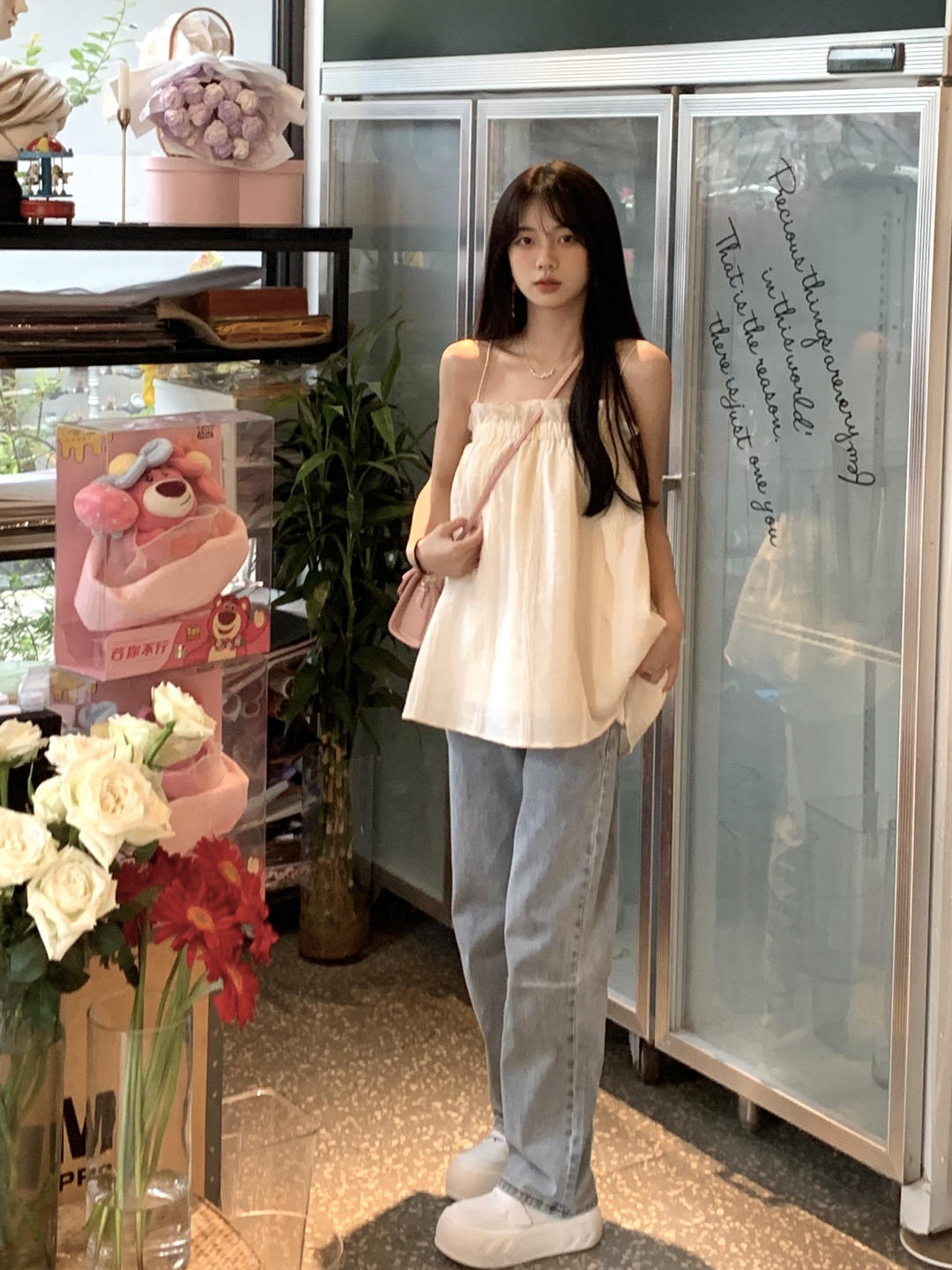 - bf风宽松高腰牛仔裤