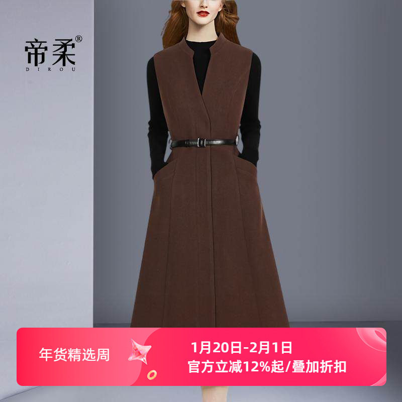 菲梦伊复古优雅时尚套装女冬季百搭圆领修身打底针织衫背心连衣裙