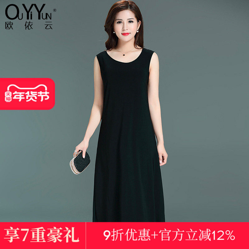 黑色无袖背心连衣裙女外穿内搭打底修身大码中长款吊带a字版长裙