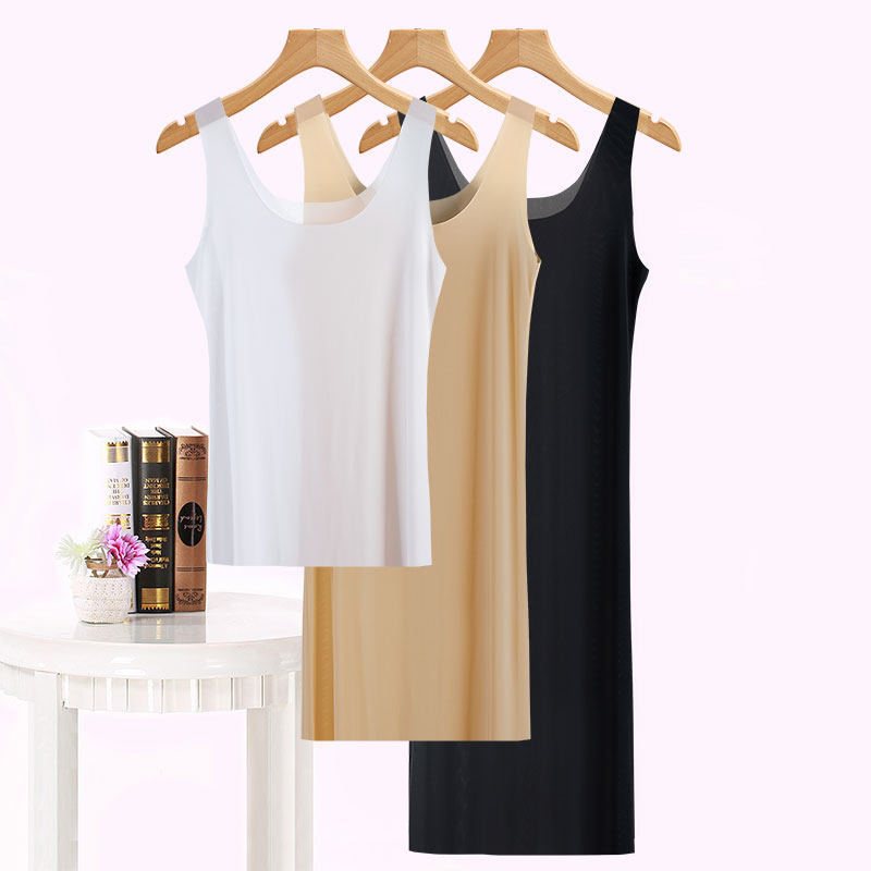 夏季冰丝防透背心女中长款大码修身吊带睡裙薄款内搭无袖打底衬裙