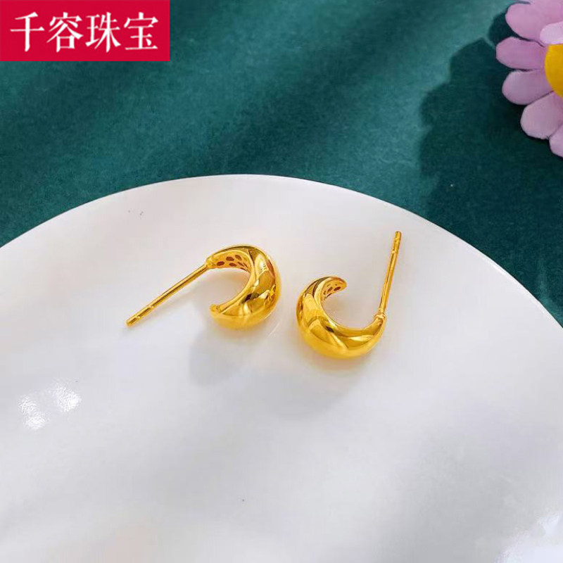黄金爱心耳钉女999足金C形个性耳饰新款时尚纯金桃心耳环正品送礼