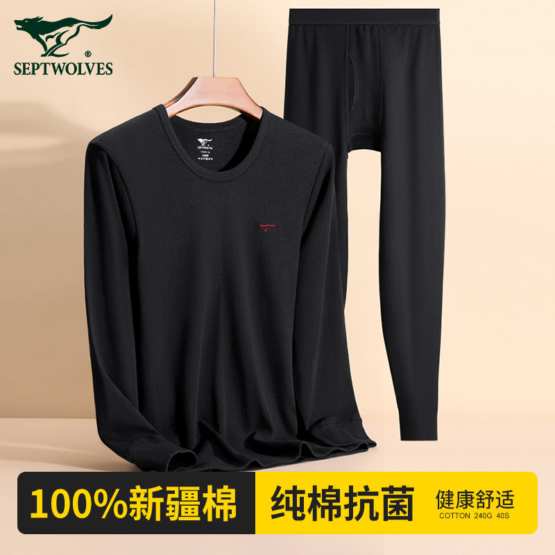 七匹狼保暖内衣男士纯棉父亲秋衣秋裤套装打底全棉薄款冬季棉毛衫