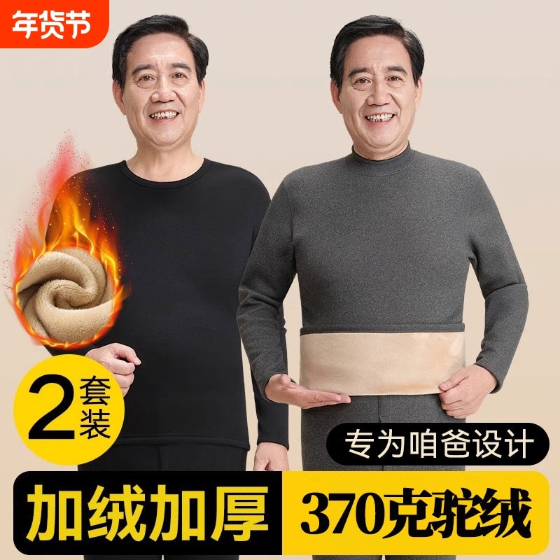 保暖内衣男士加厚加绒父亲中老年人爸爸秋衣秋裤套装冬季羊绒发热