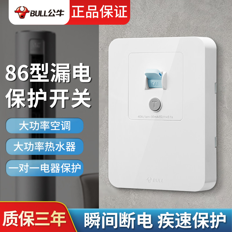 公牛防漏电保护开关32A家用热水器86型三匹空调漏电漏保插座面板