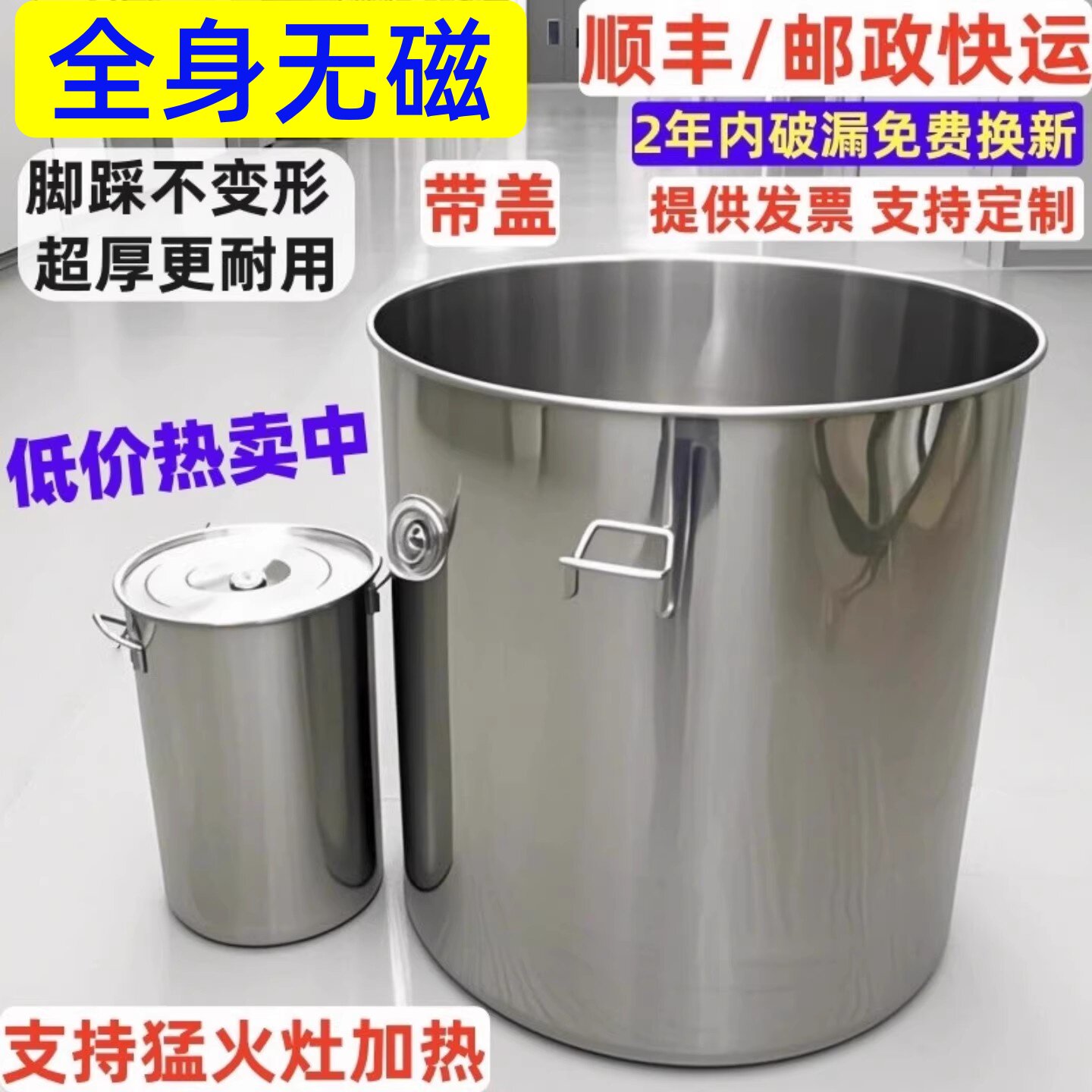 不锈钢桶带盖商用大桶加厚水桶圆桶304食品级汤锅大容量55订制卤6