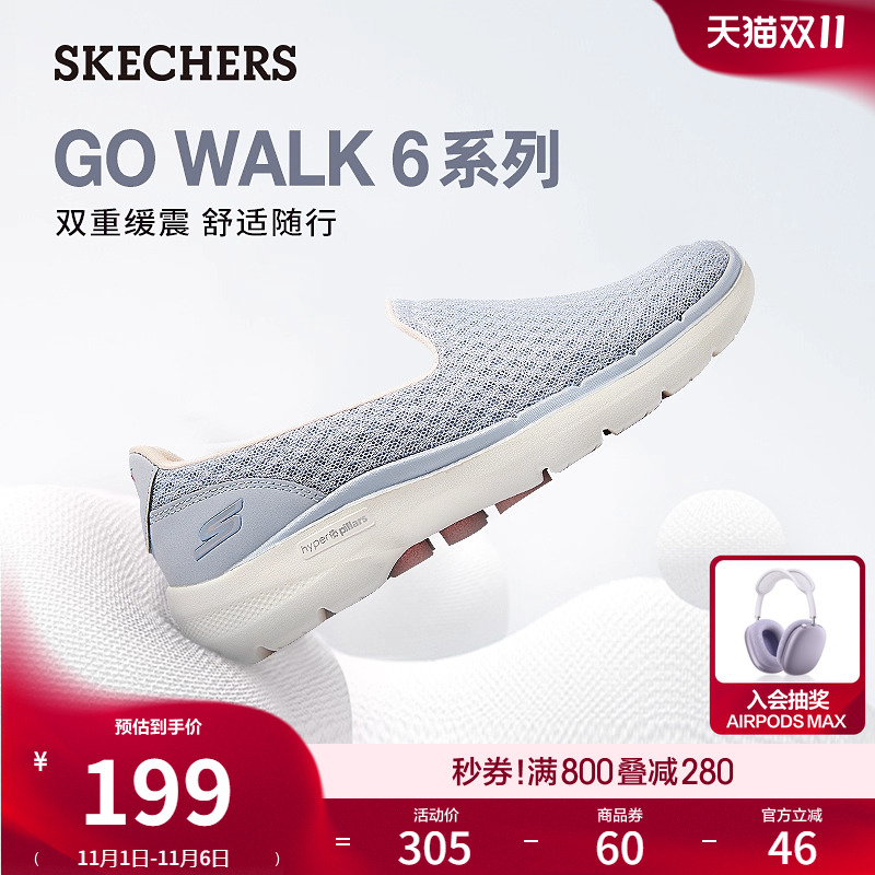 斯凯奇GOWALK 6秋冬女鞋浅口一脚蹬休闲鞋懒人鞋健步鞋软底布鞋