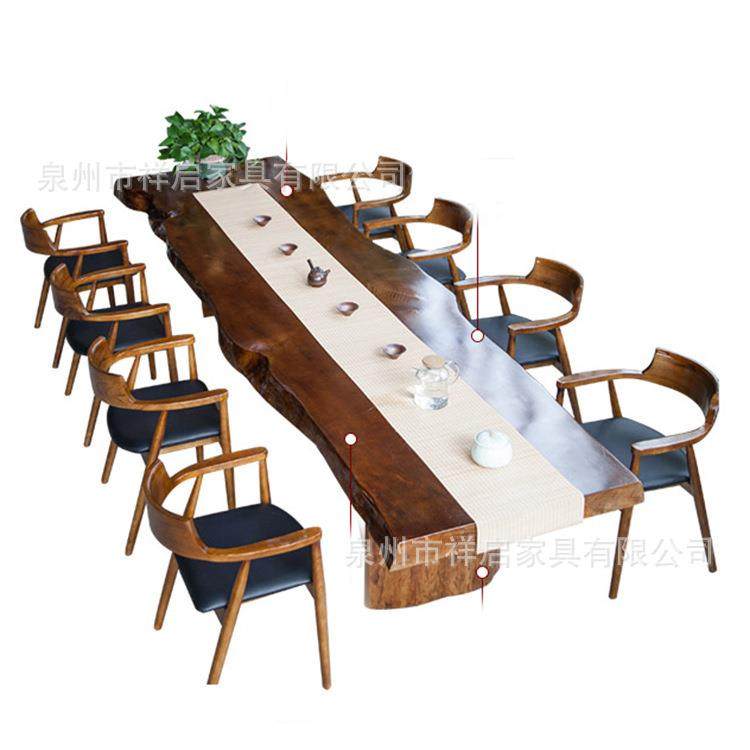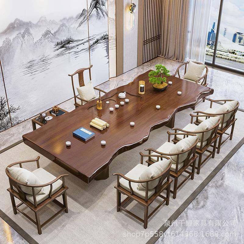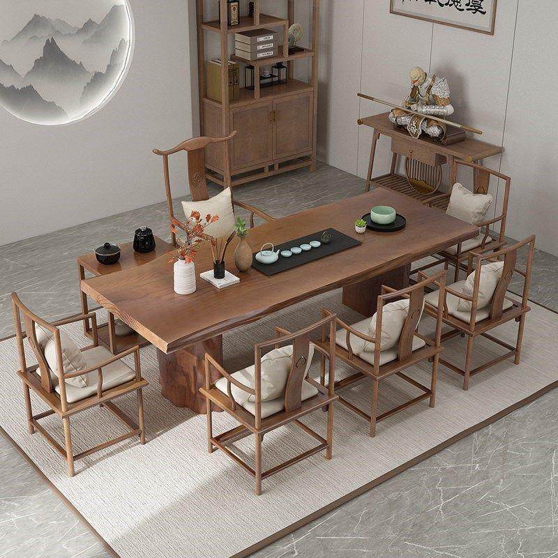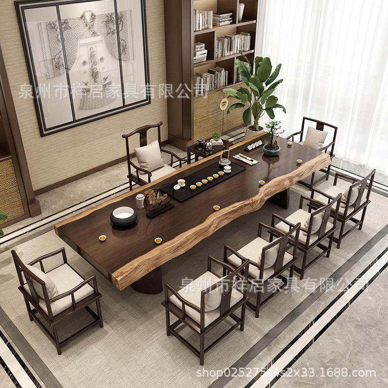 整板南美胡桃木新中式实木茶桌椅组合客厅原木茶几泡茶桌大板桌子