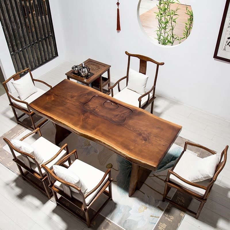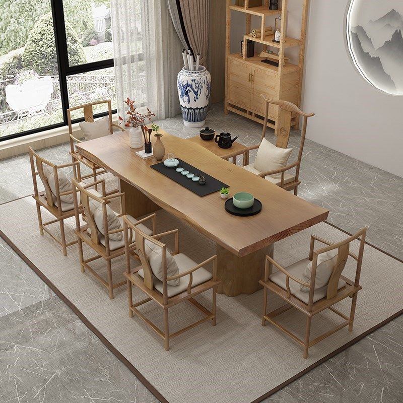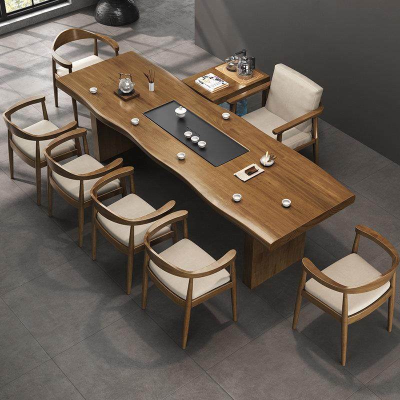 侘寂风实木茶桌大板家用茶几白蜡木现代简约办公室商用茶桌椅组合