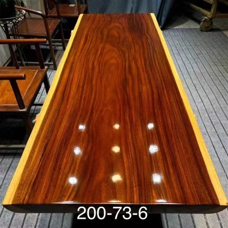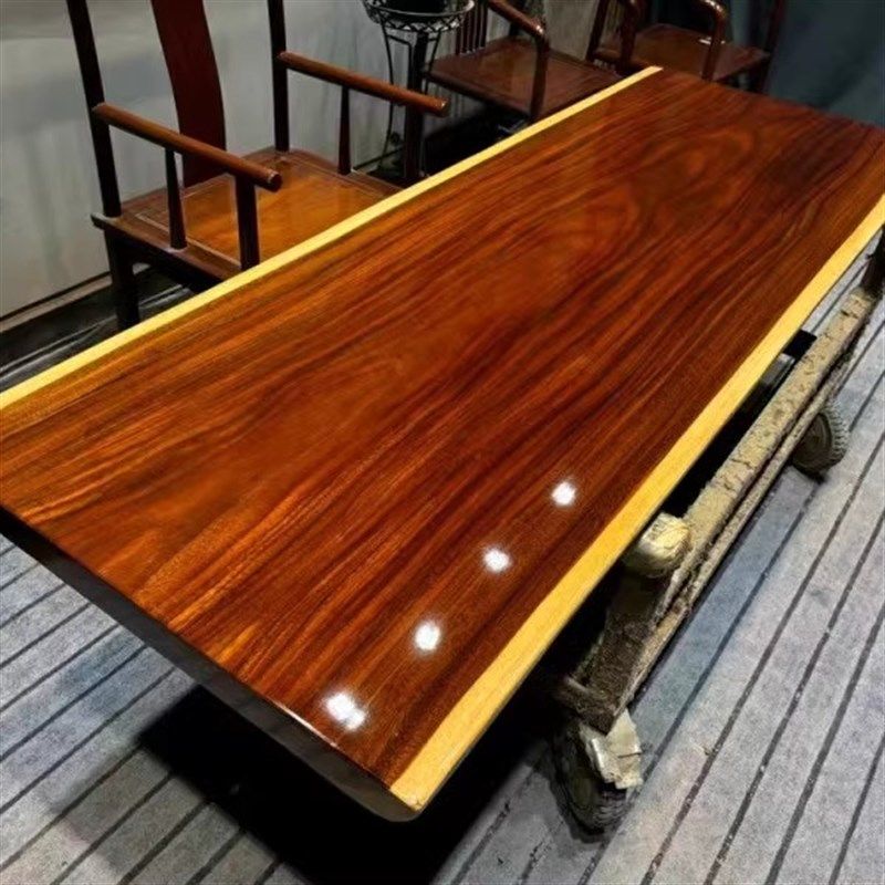 缅甸柚木餐桌书桌茶桌大板柚木中古风茶几家具自然边原木实木整板