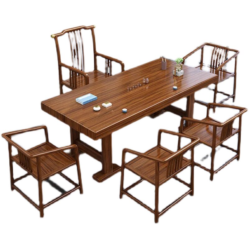 新中式黑黄檀实木大板茶台茶桌椅组合办公家用一桌五椅茶几泡茶台