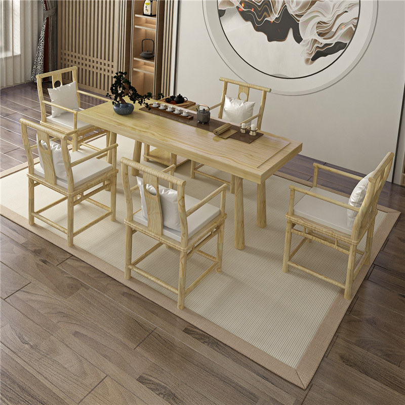 中式实木茶桌大板松木新桌子泡办室洽谈接待公禅UHE意功夫茶台