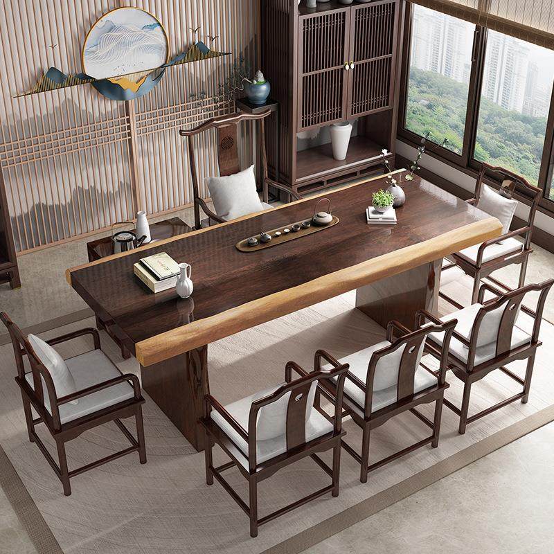 黑胡桃实木茶台茶桌椅组合家用客厅办公室高端禅意喝茶桌大板茶台