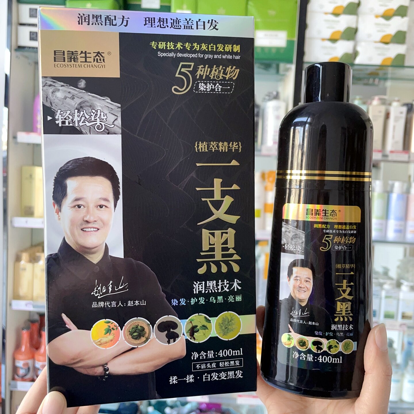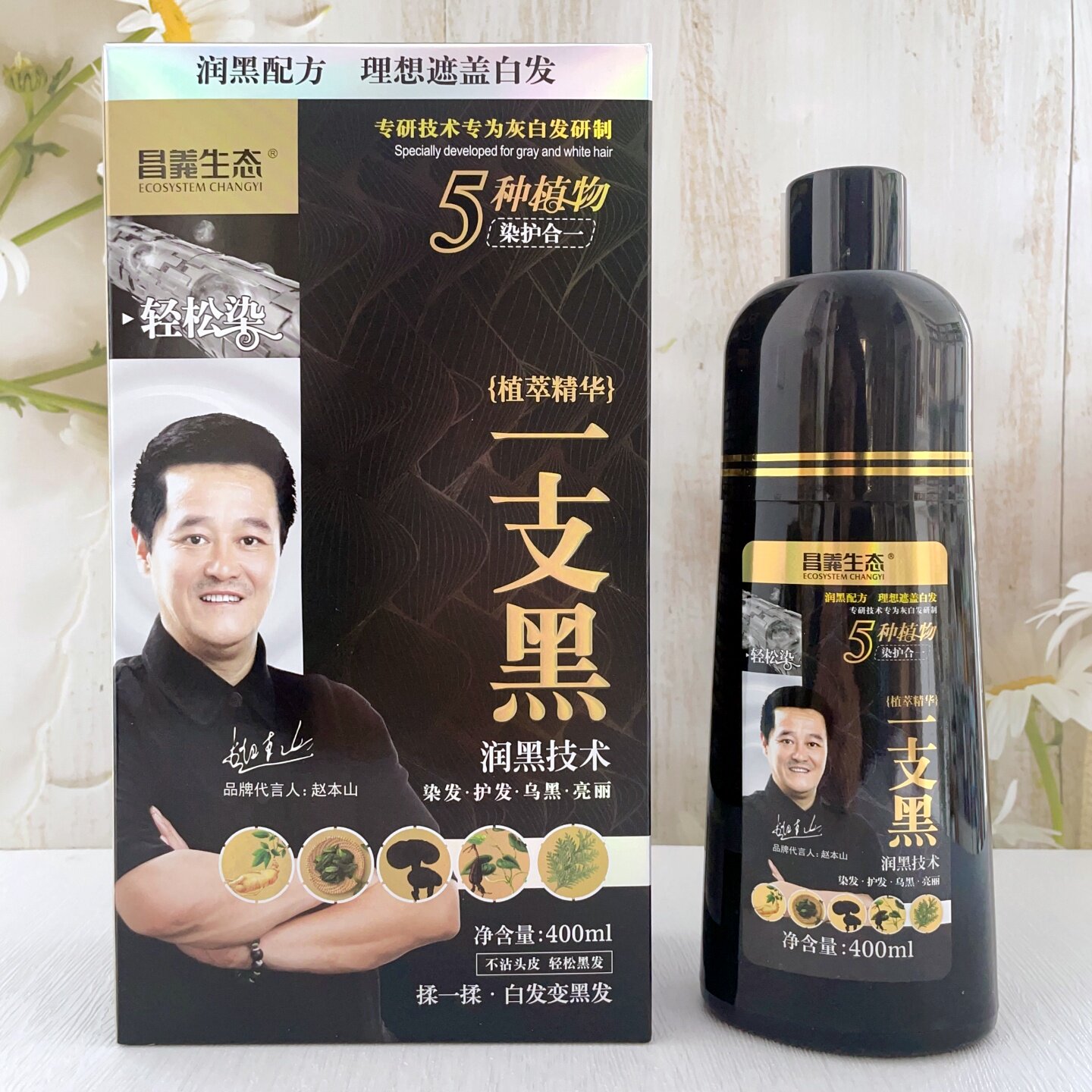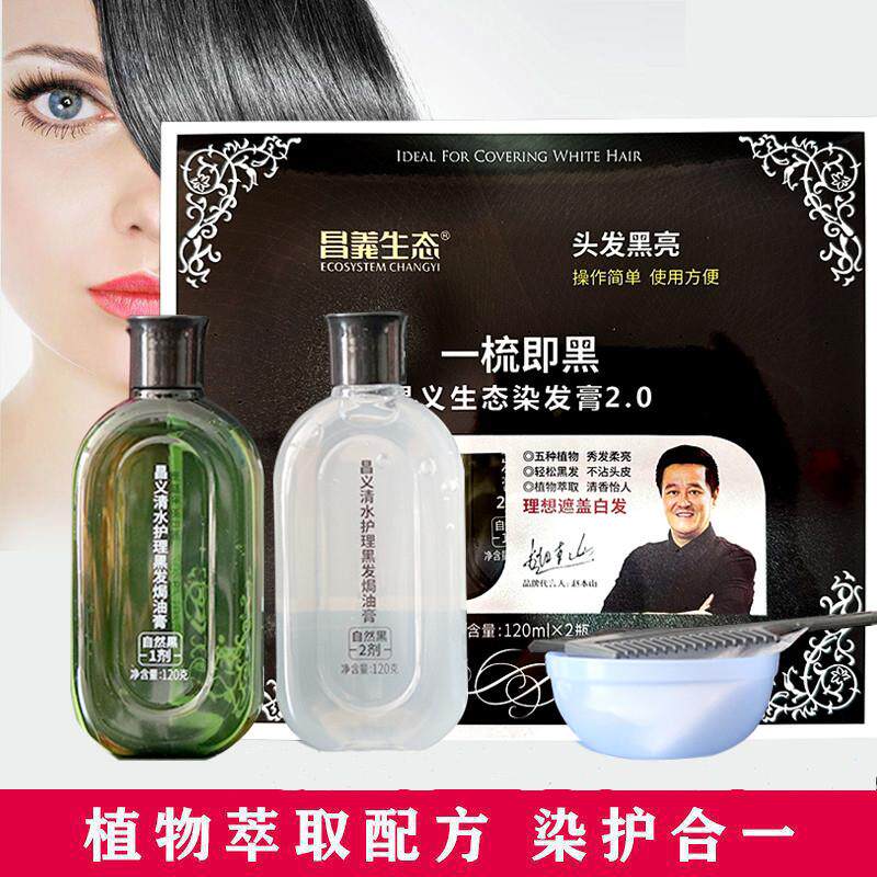 昌义生态一洗黑染发露白发变黑发洗发水染发膏不沾头皮染发剂黑色