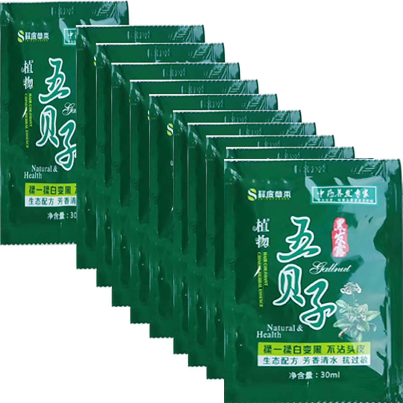 五贝子染发剂纯植物一洗黑袋装泡泡染染发剂白发变黑发清水染发膏