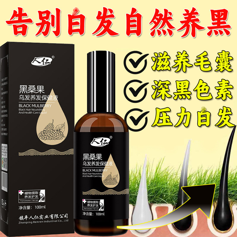 人仁黑桑果乌发养发保健液白发变黑发洗发水发根转黑少产后白头发