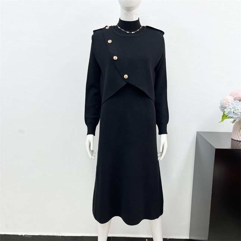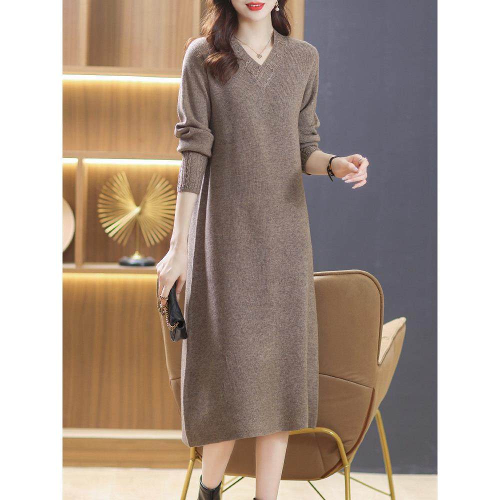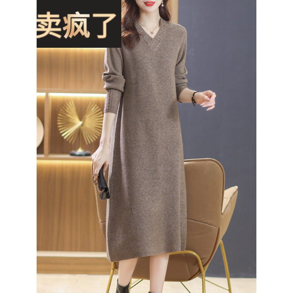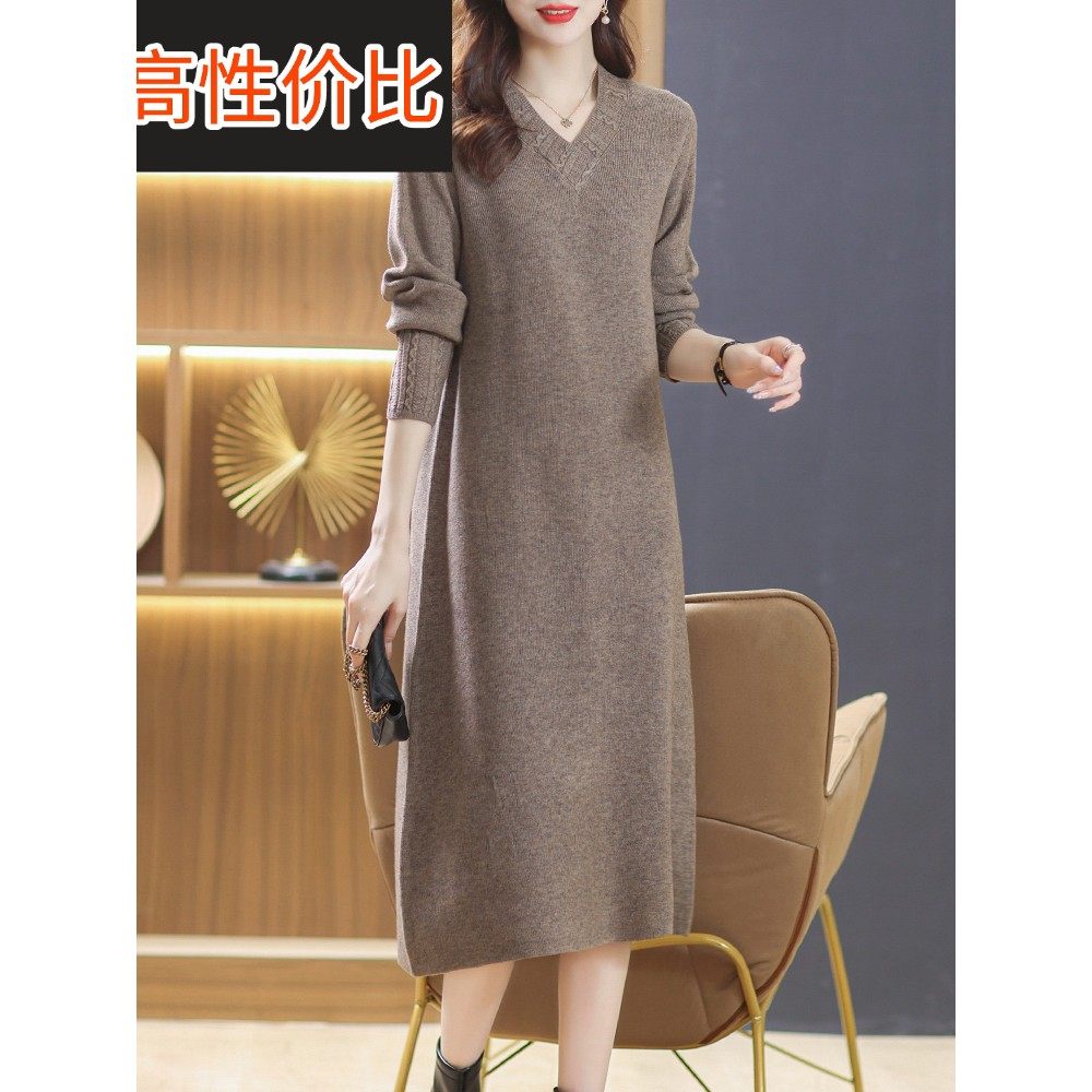 针织连衣裙秋冬装2025新款中年妈妈羊毛长裙气场强大女装打底裙子