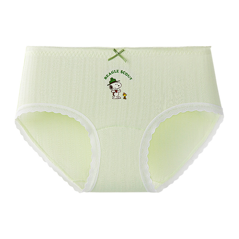 女士中腰可爱卡通学生内裤女日系可爱小熊新颖绿色少女内裤纯棉裆