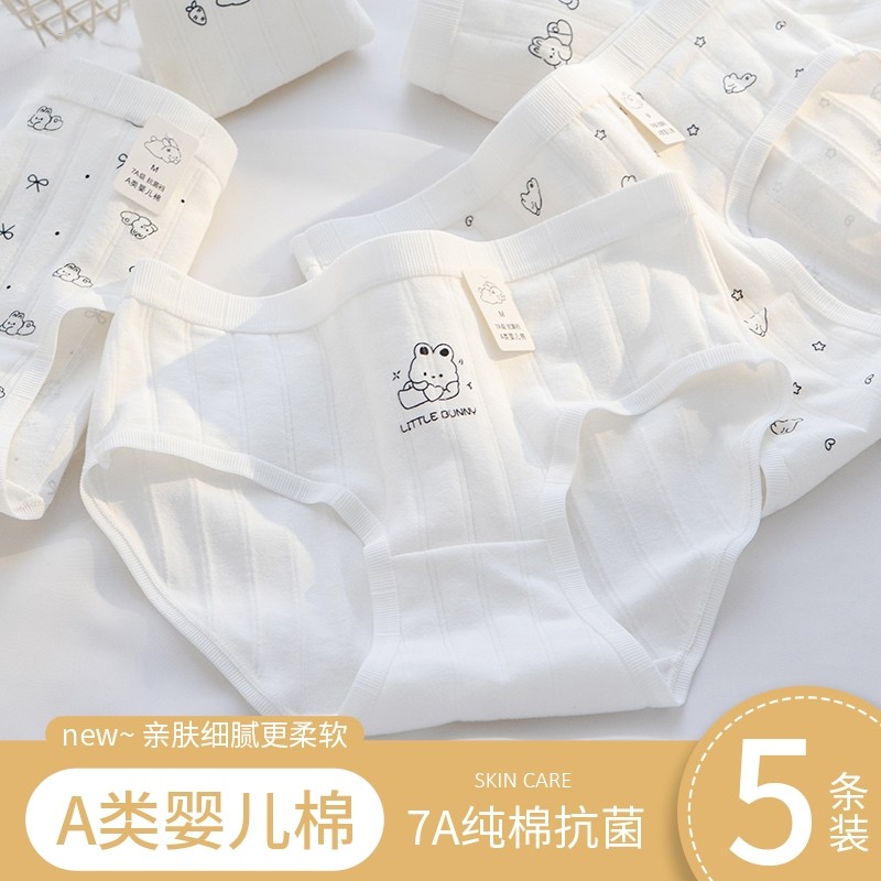 贩卖粉色温柔5条装A类婴儿棉少女内裤纯棉裆5A抗菌裆部柔软三角裤