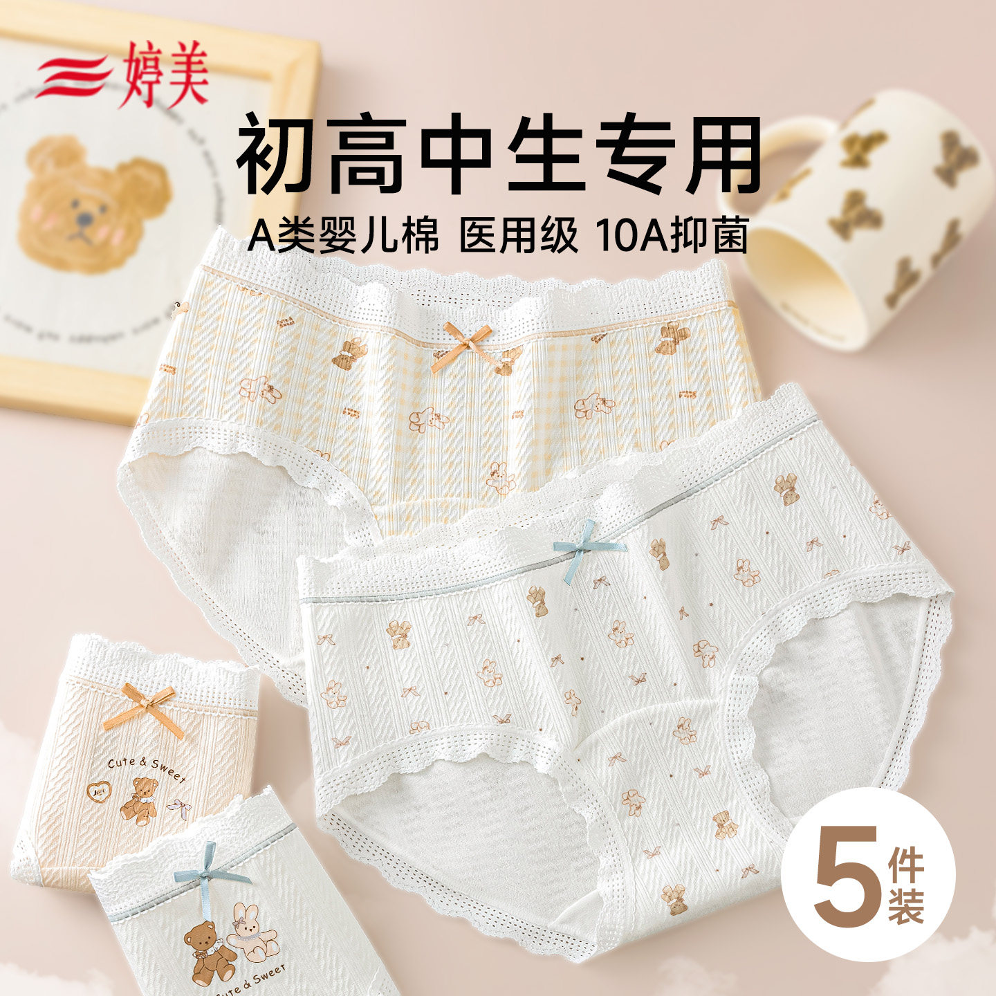 婷美少女内裤纯棉10A类全棉青少年发育期女大童少女学生三角内裤