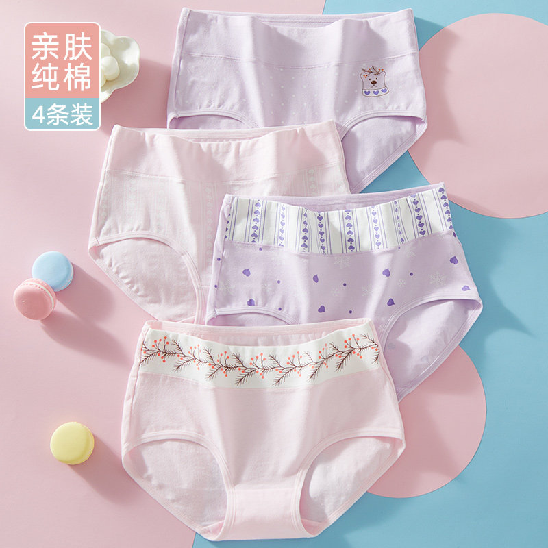 3条黛丝少女内裤纯棉生理裤高腰月经期防侧漏姨妈透气柔软三角裤