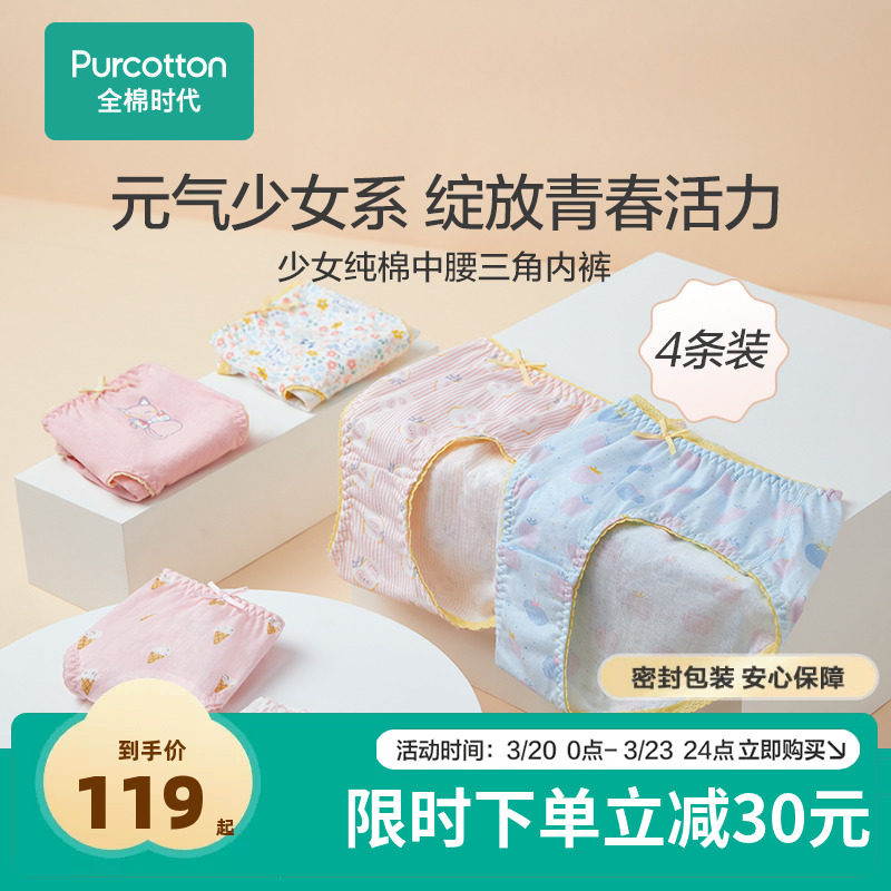 帕兰朵少女内裤纯棉大童初中学生a类全棉抗菌裆发育期女孩三角裤