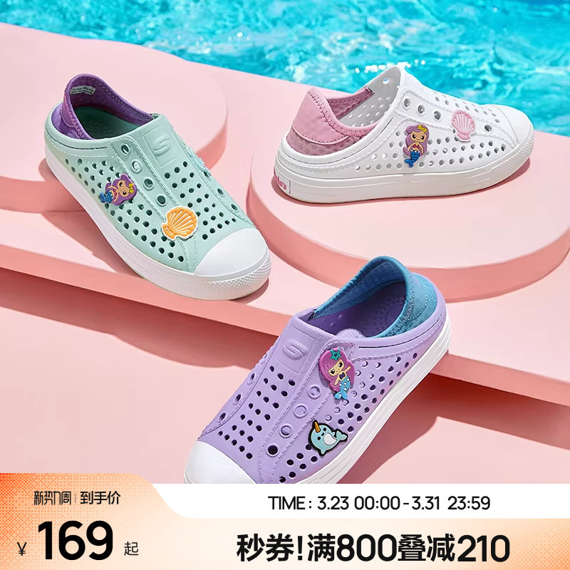 Skechers斯凯奇儿童鞋一脚蹬包头凉鞋夏季男女洞洞鞋中大童沙滩鞋