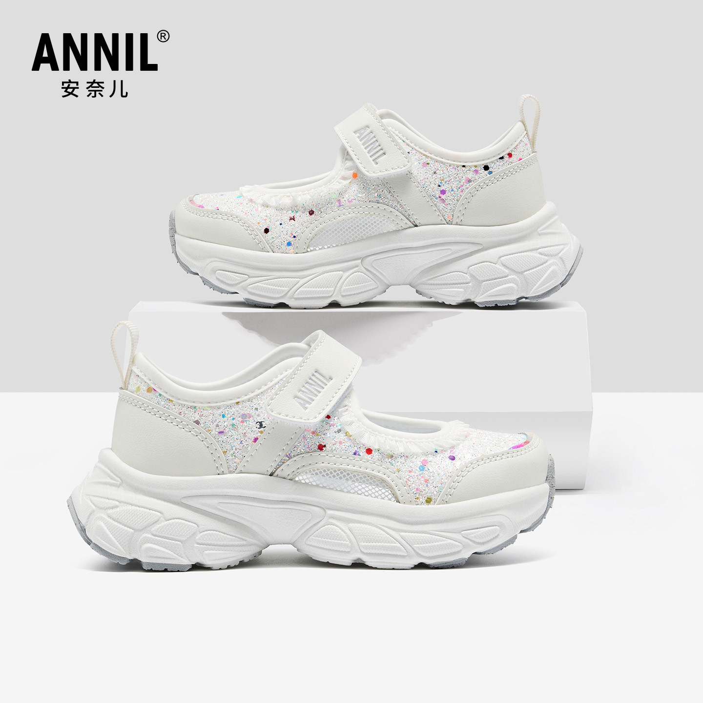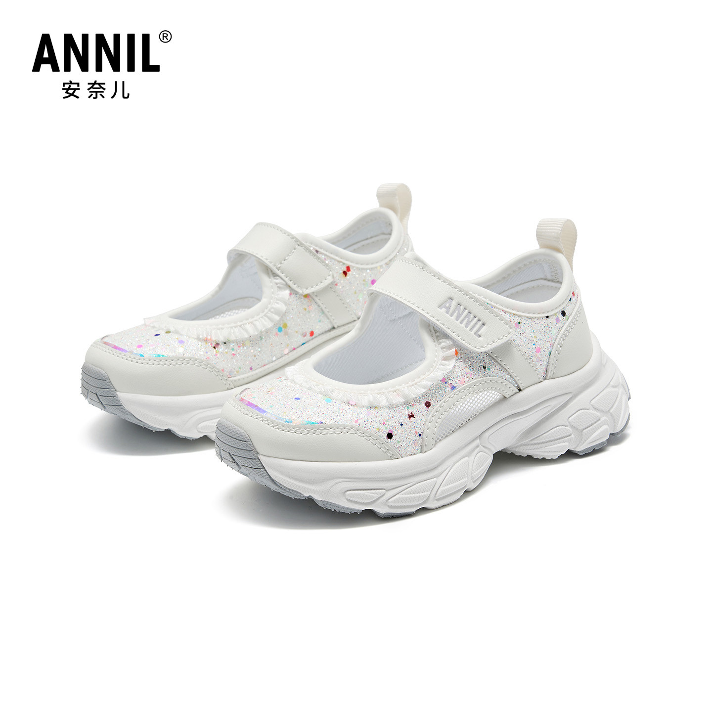 安奈儿童鞋女童亮片凉鞋夏季白色中大童女孩时尚休闲软底轻便鞋子