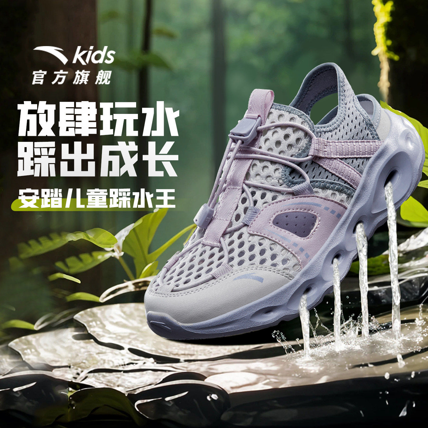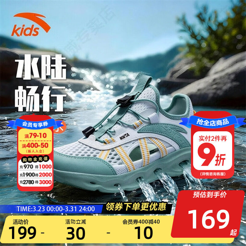 踩水王安踏儿童女大童沙滩鞋2026年夏季新款防滑女孩户外溯溪凉鞋