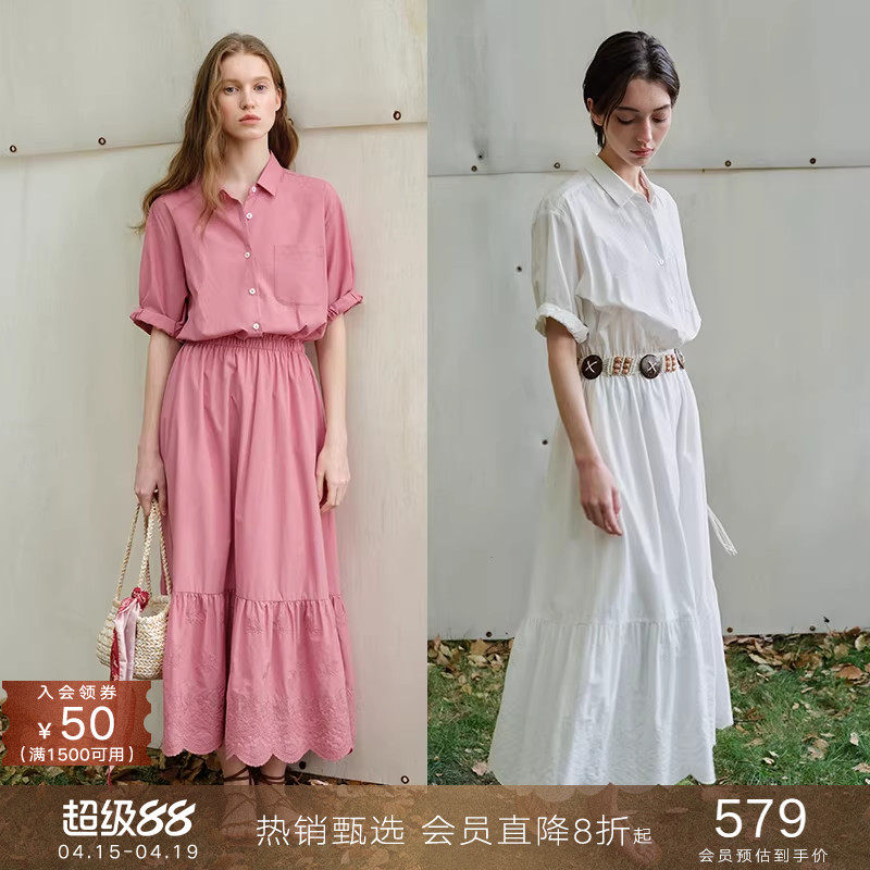 dfvc苎麻复古绣花V领衬衫裙女2026年夏季新款小个子宽松连衣裙薄