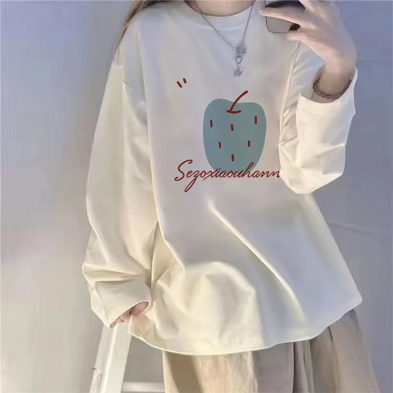 白色长袖t恤女2025新款大码女装显瘦宽松卡通印花打底衫秋季上衣