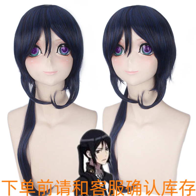 K夜刀神狗朗 狗哥 深墨蓝色长发马尾辫子假毛cosplay假发 现货wig
