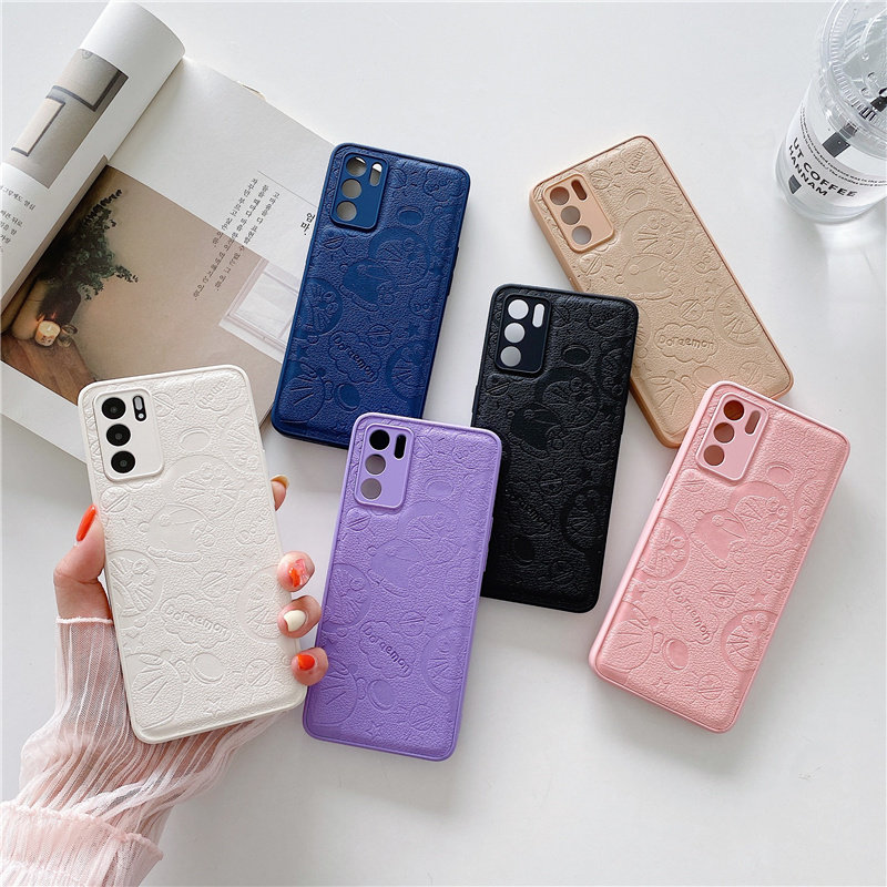 秋冬季opporeno6手机壳reno6pro多啦a梦reno5皮质reno5pro卡通reno4新款reno4pro全包硅胶防摔浮雕保护套网红