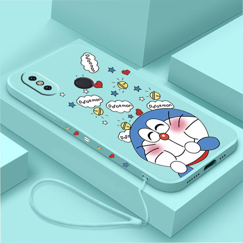 送挂绳多啦a梦小米6x手机壳小米mix2s可爱小米6卡通小米Mix2液态硅胶叮当猫全包镜头软壳男女款情侣保护套潮
