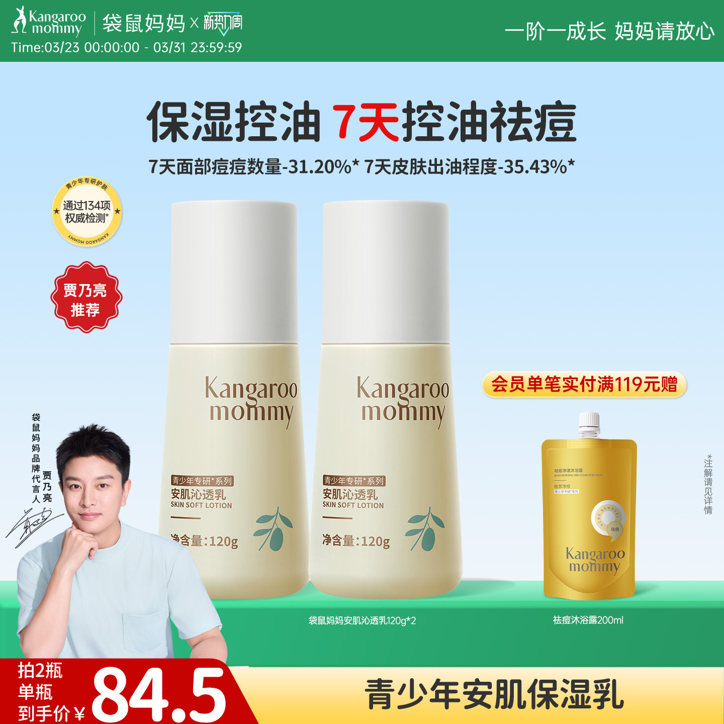 袋鼠妈妈青少年乳液护肤品男青春期女孩控油祛痘舒缓补水保湿乳液